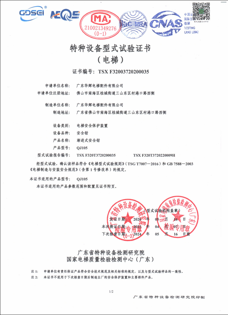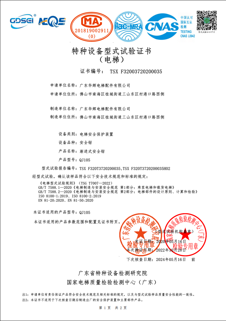 2020 issuance QJ105 certificate No.:TSX F32003720200035(New standards)