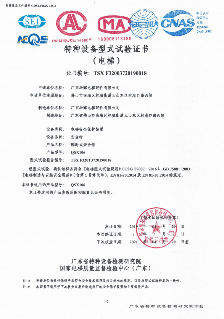 2019 issuance QSX106 certificate No.:TSX F32003720190018