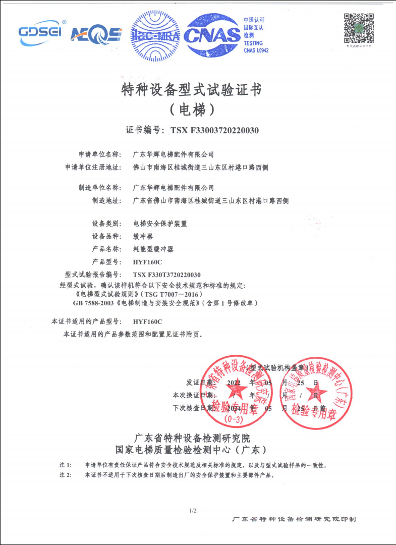 HYF160 test certificate