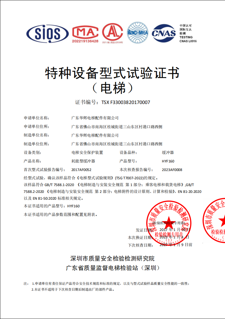 2017 issuance HYF160 Shenzhen certificate No.:TSX F33003820170007