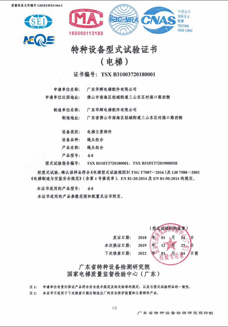 2018 issuance Φ8 certificate No.:TSX B31003720180001(Second)