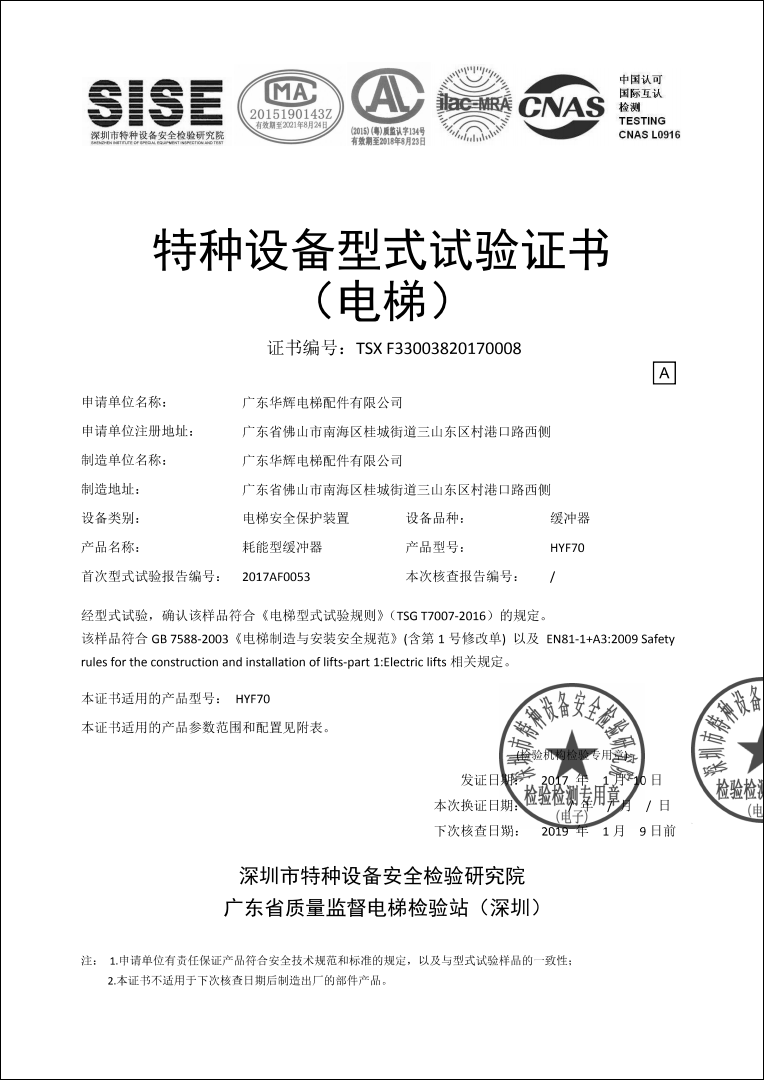 2017 issuance HYF80 Shenzhen certificate No.:TSX F33003820170006(2018.11)