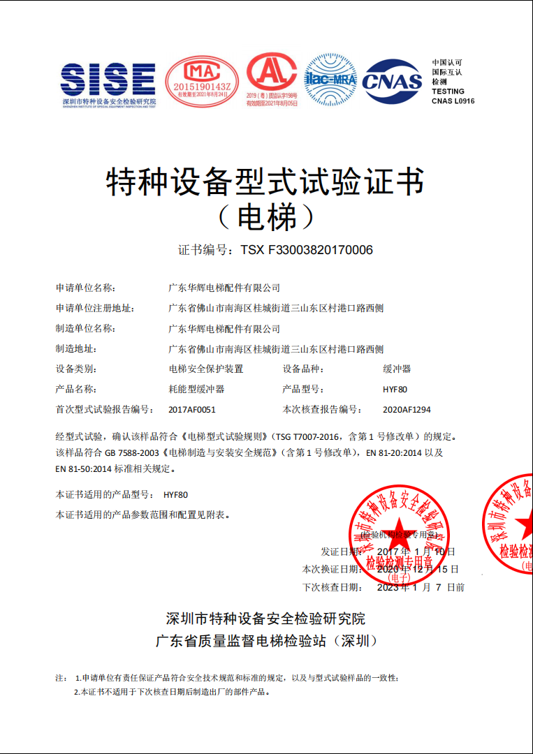 2017 issuance HYF80 Shenzhen certificate No.:TSX F33003820170006(2020.12)