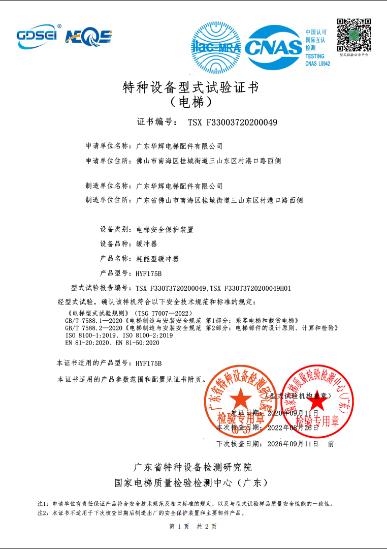 2019 issuance HYF175 certificate No.:TSX F33003720190002(Second)