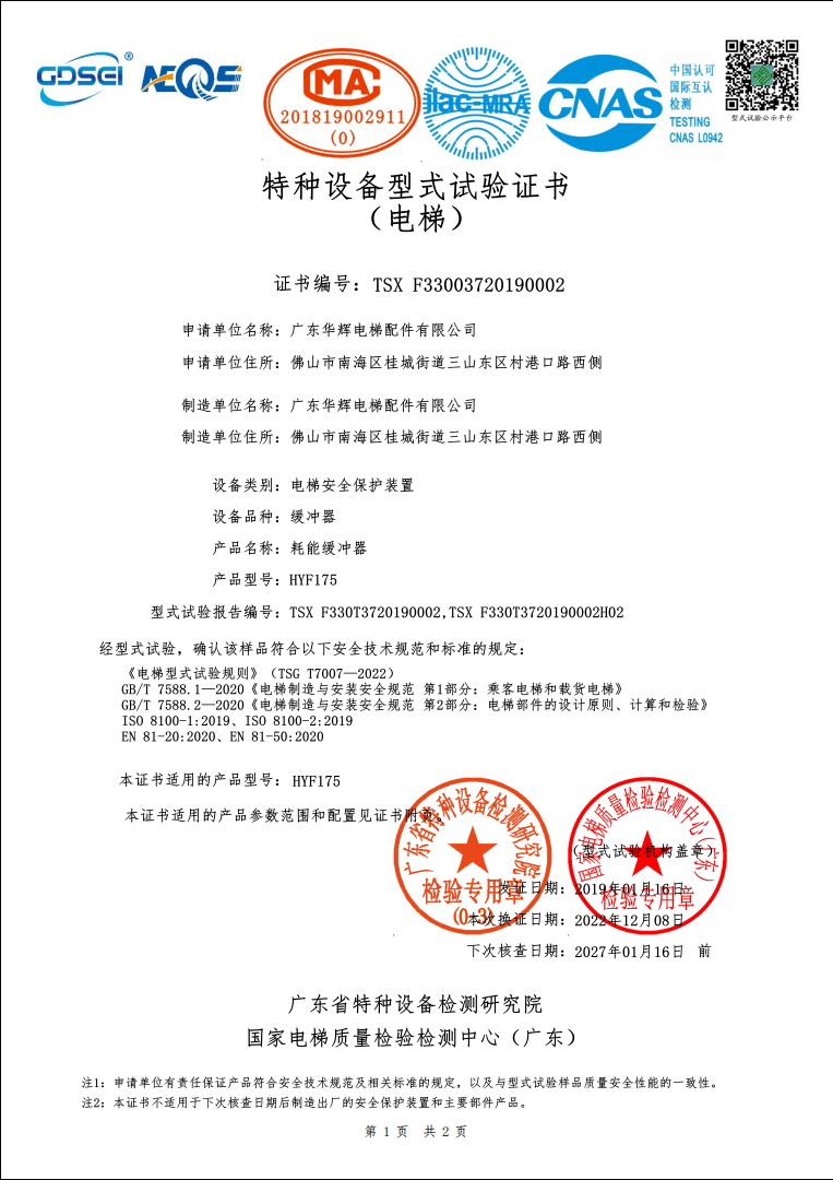 2019 issuance HYF175 certificate No.:TSX F33003720190002(2019.1)
