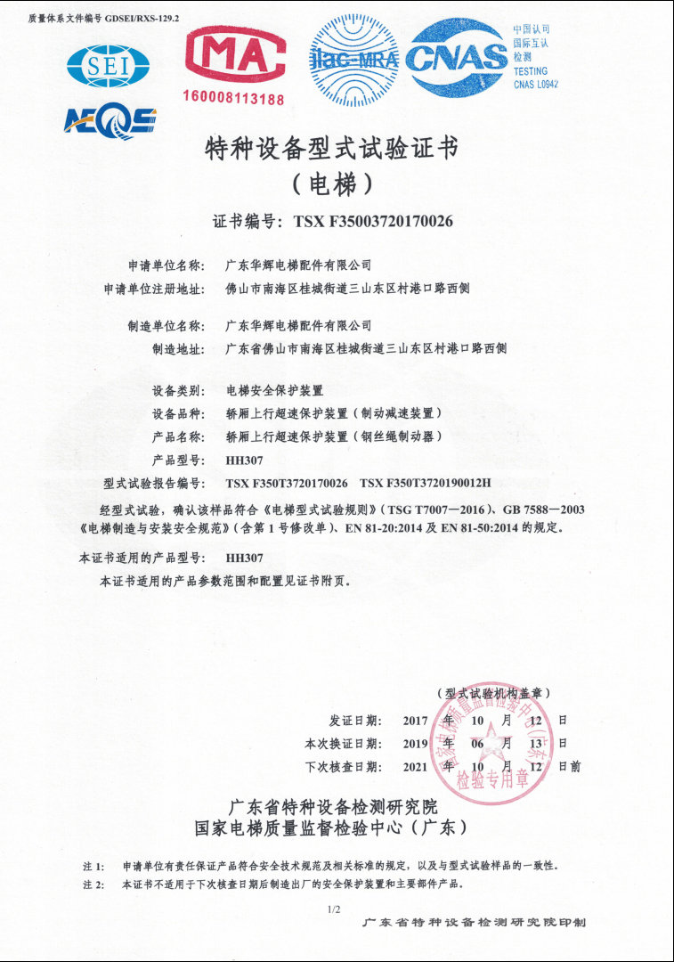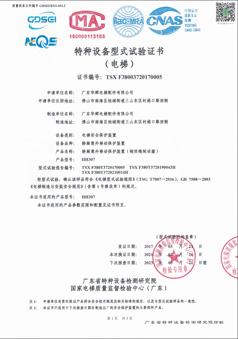2017 issuance HH307 certificate No.:TSX F35003720170026(Second)