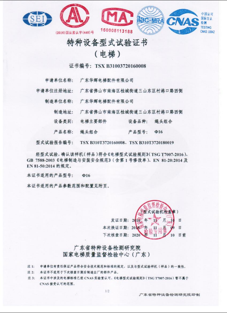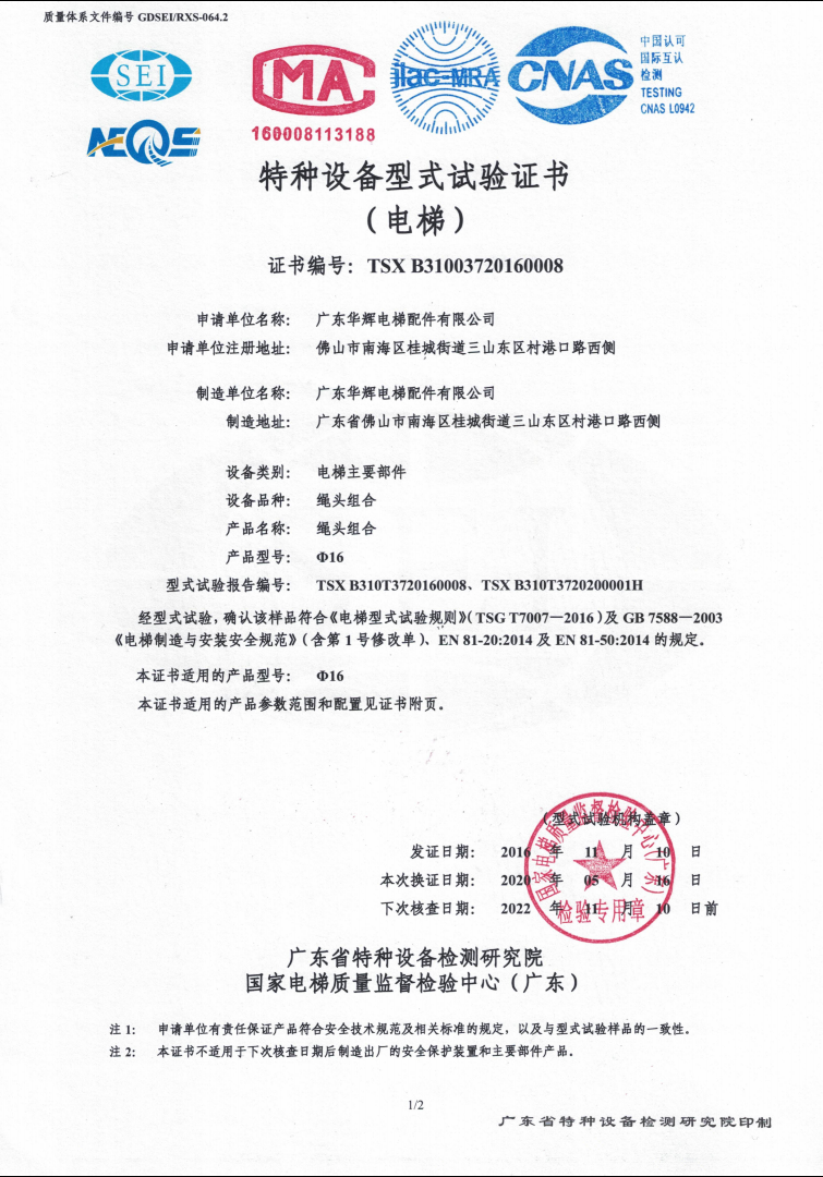 2016 issuance Φ16 certificate No.:TSX B31003720160008(Second)
