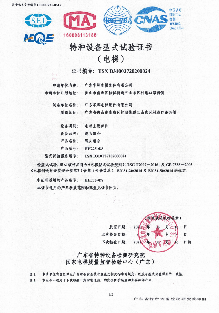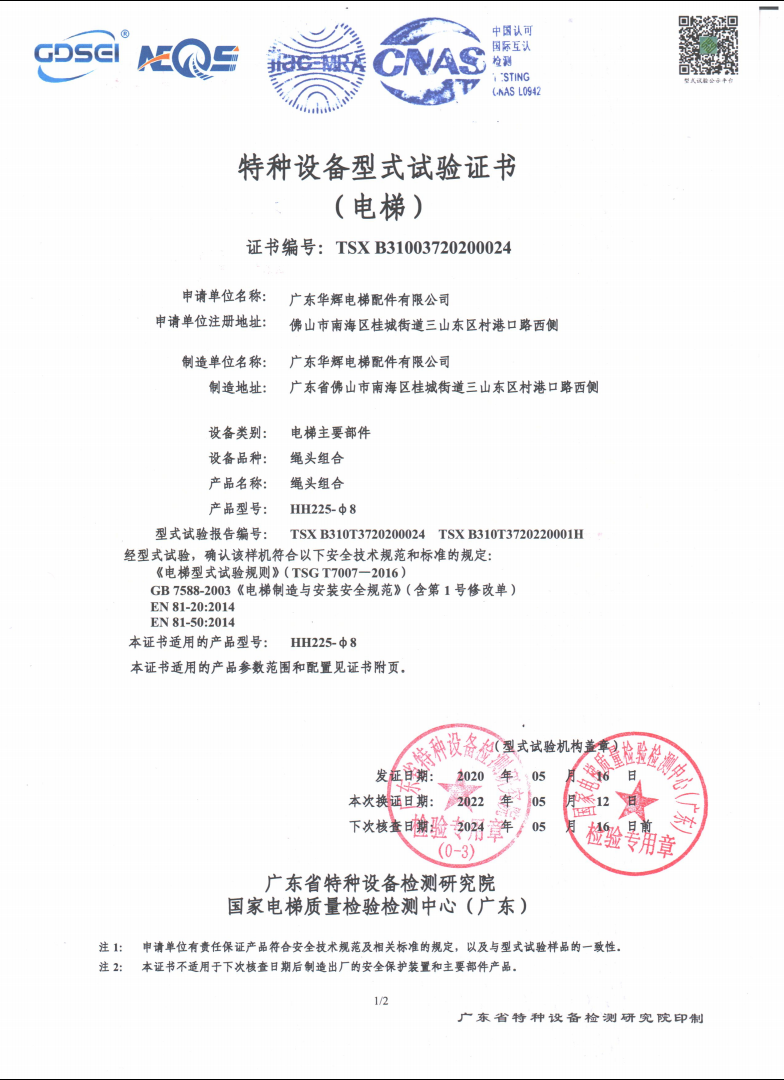 2020 issuance HH225-Φ8 certificate No.:TSX B31003720200024(First)