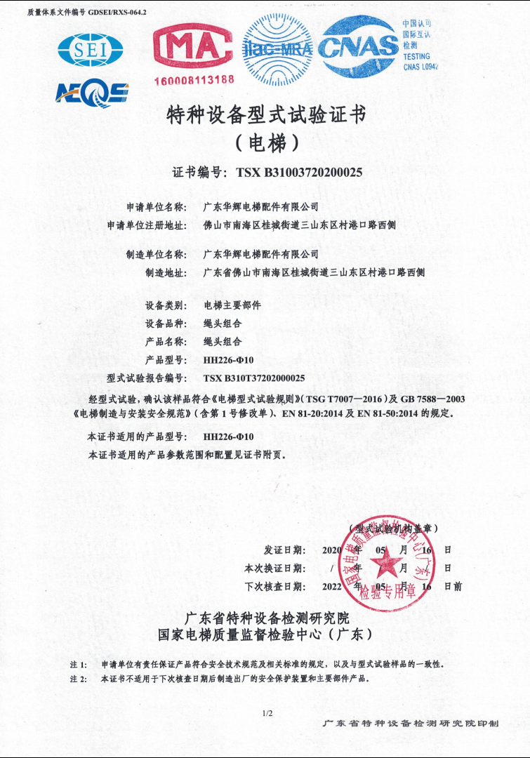 2020 issuance HH226-Φ10 certificate No.:TSX B31003720200025(First)