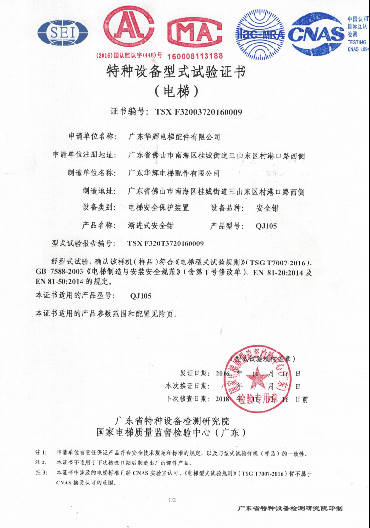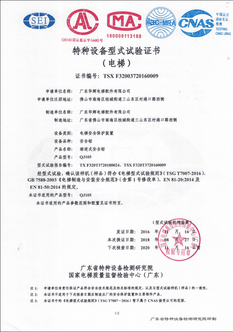 2016 issuance QJ105 certificate No.:TSX F32003720160009