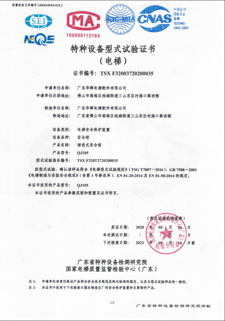 2020 issuance QJ105 certificate No.:TSX F32003720200035